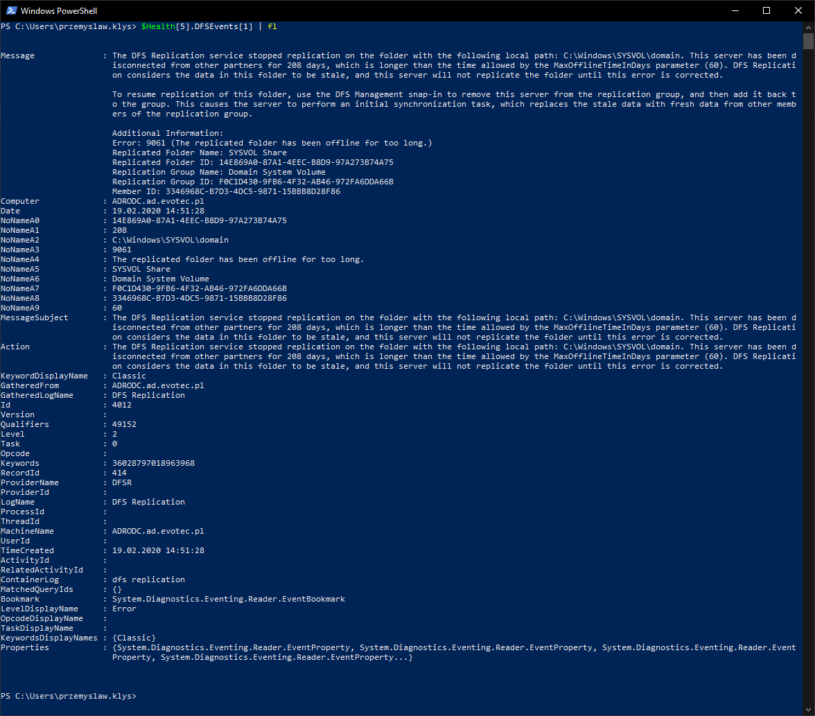 So what to do? Verify that your DFS is healthy on all your DC's, and do it frequently enough. For this purpose I've automated this process and created a single function Get-WinADDFSHealth.