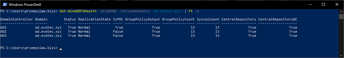 Get-WinADDFSHealth | Format-Table -AutoSize *