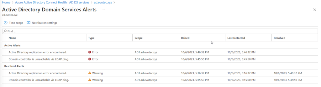 Here's a list of currently supported notifications/detections. Even without having real-time monitoring for large environments, detecting problems like this is super beneficial. Unless you have specialized software already able to deliver such detection with real-time monitoring, Microsoft Entra Health service for ADDS is worth investing in.