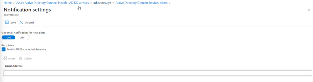 By default, only Global Administrators get email notifications about issues with Active Directory, but it can be changed to notify any other email addresses.