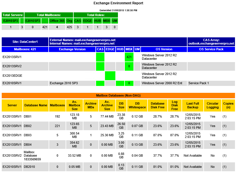 Last few days, I've fulfilled my little dream related to building HTML tables. You know I've been using HTML based scripts for a long while for Microsoft Exchange from multiple people like Steve Goodman or Paul Cunningham (and others) and when I was going thru their PowerShell building code on how they create an HTML table with multi-row titles I thought Those guys are crazy. The effort to build an HTML table for a report for a person who has no clue how to do it is not something one can easily digest and understand. Sure I've learned how to build HTML tables at some point, but there was one final piece that I was missing – multi-row headers. If you don't know what I mean, and how they look like the below image from Steve's Goodman script should give you a hint.