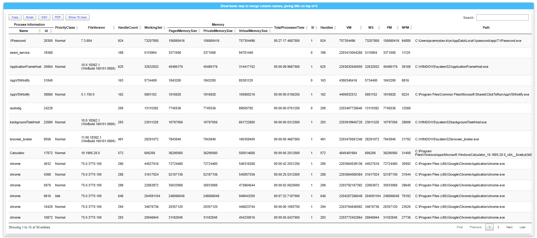 Table -DataTable $ProcessesAll -HideFooter -DisableResponsiveTable {