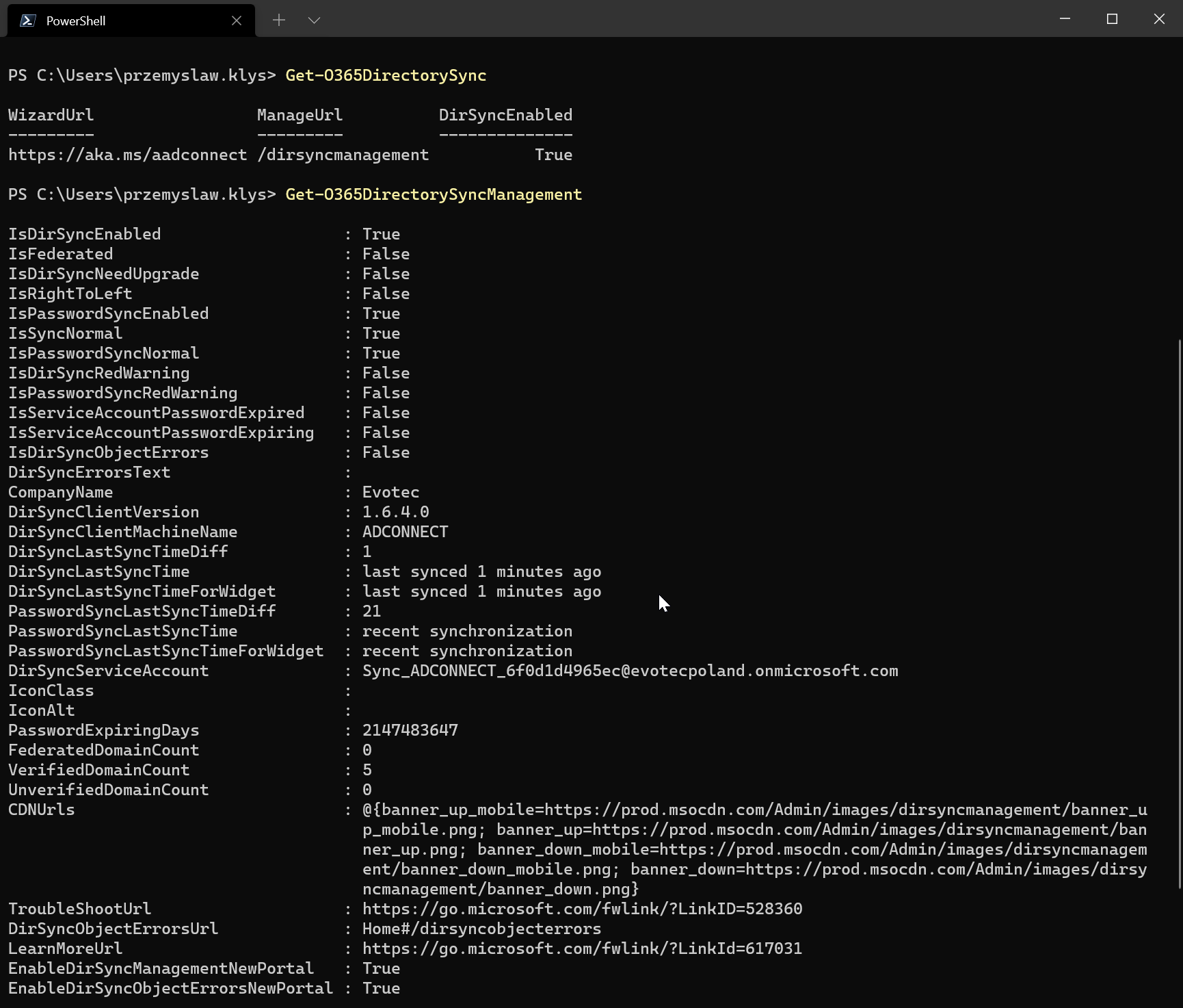 💡 Azure AD Connect Information from Office 365 using PowerShell