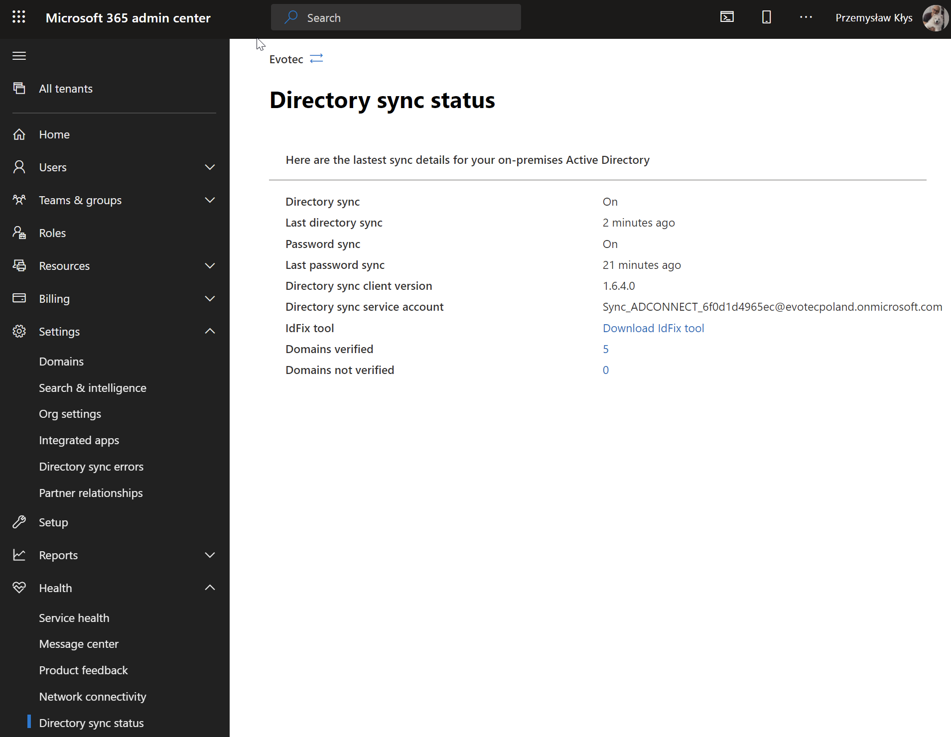 You can also see the Directory Sync Errors – but I don't have anything to show :-)