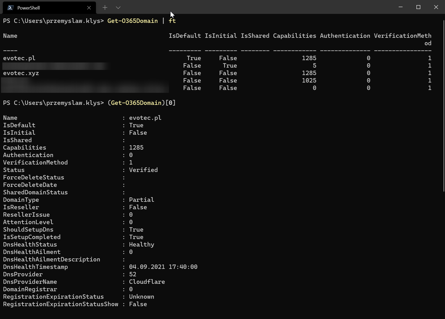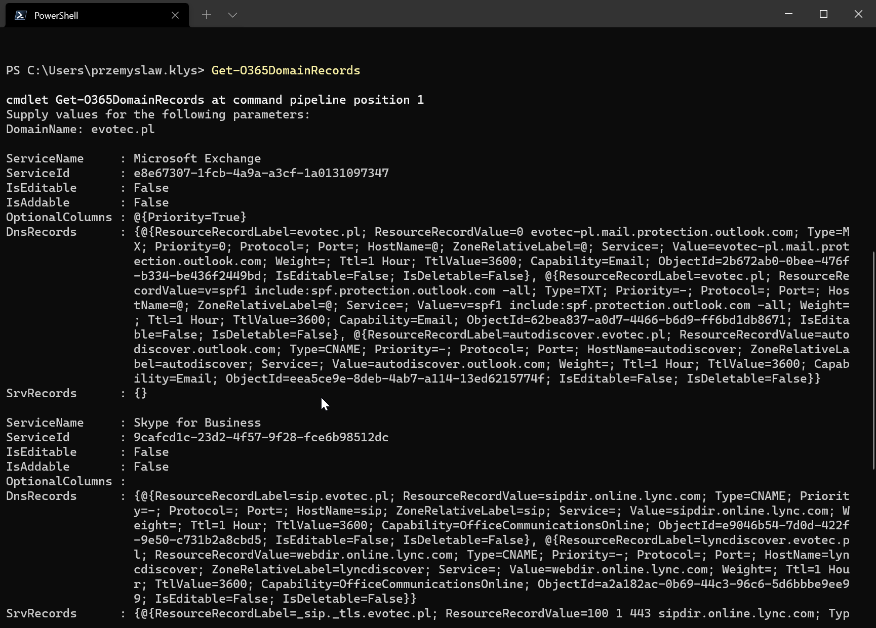 $Tenant = Get-O365DomainHealth -DomainName 'evotec.pl'