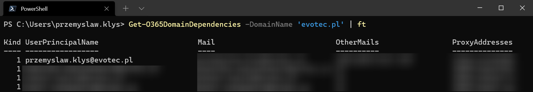 Get-O365DomainDependencies -DomainName 'evotec.pl' | ft