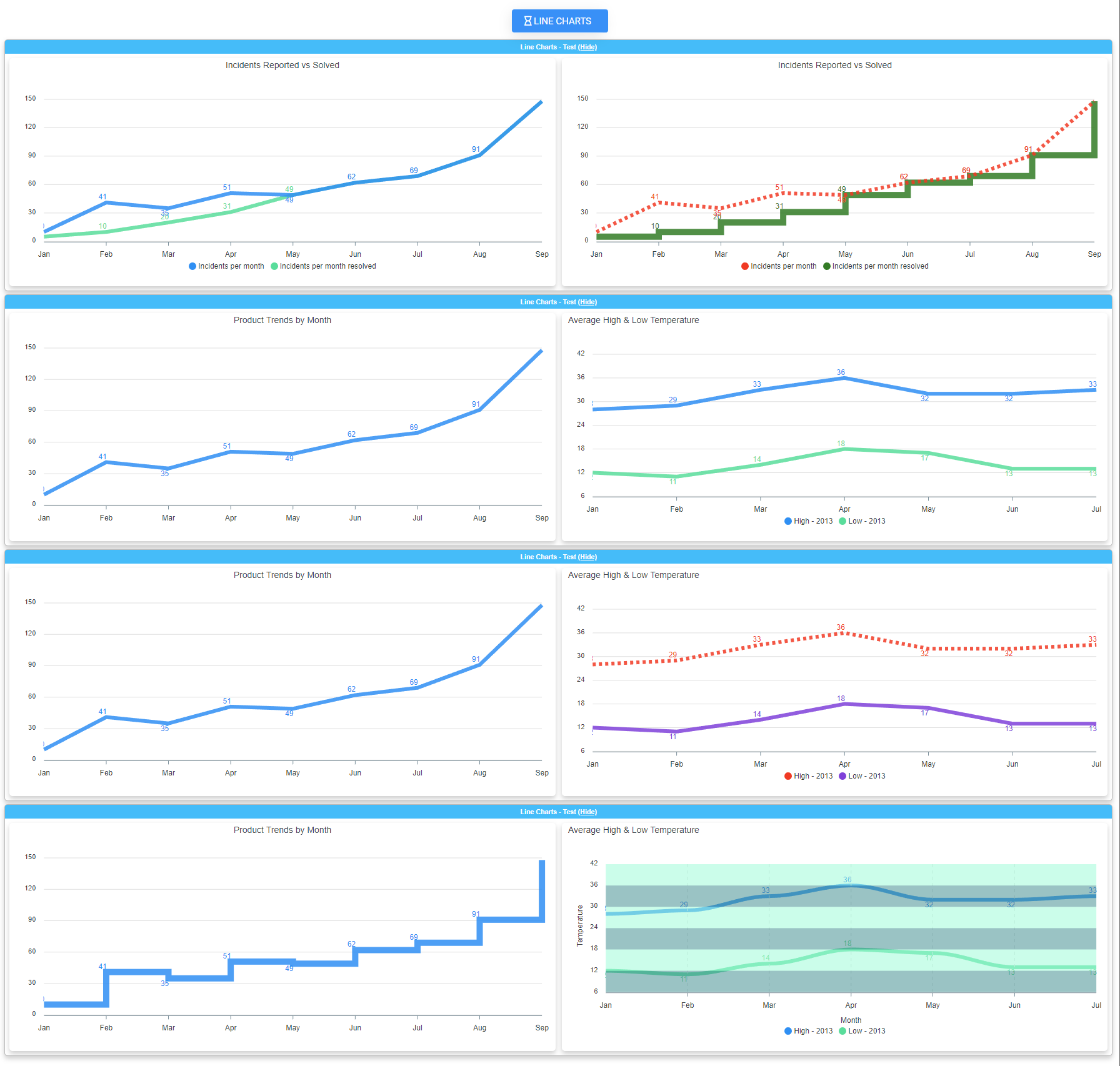 The same approach applies to line charts. Below you can find some examples on how you can configure charts to match your style.