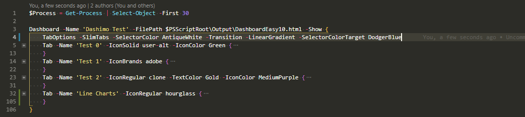 Dashboard -Name 'Dashimo Test' -FilePath $PSScriptRoot\Output\DashboardEasy10.html -Show {