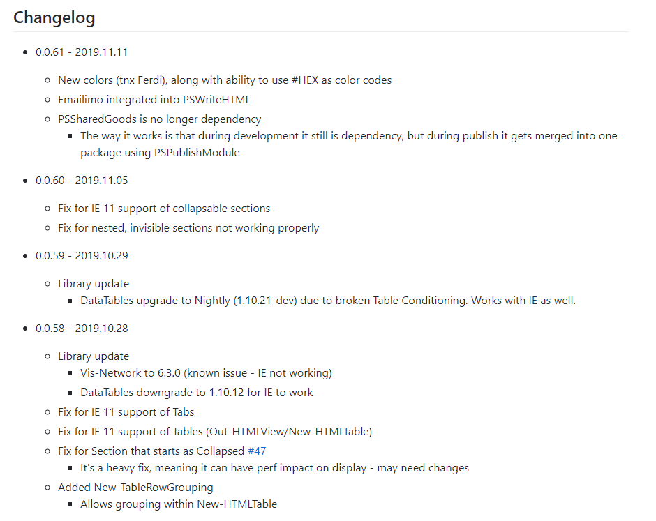 I will do the same treatment for all my other PowerShell modules when I get to them. I still am not so good with GitHub commit messages though. At least I try to keep a change log on GitHub which may be helpful.