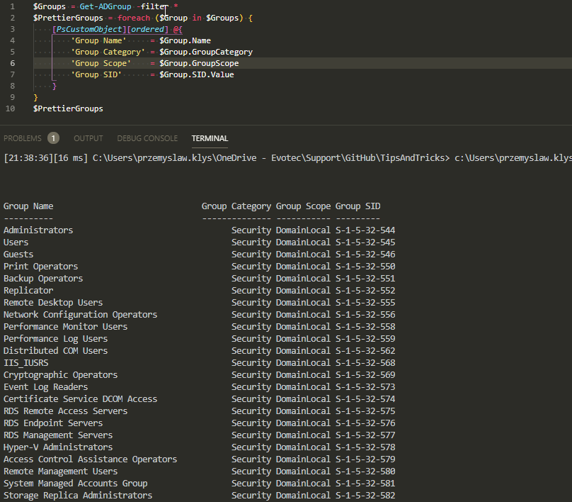 I've been working today trying to deliver to one of my Clients Active Directory documentation. To my surprise, something that worked fine for a very long time has started to provide weird results. So, after spending about 8 hours taking apart a few of my PowerShell modules trying to find out what is wrong finally, I've found it: Export-CliXML /** Import-CliXML** were behaving in a way I didn't expect them to. But let's start from the beginning, shall we? Those two commands are great. I've used them multiple times with great success (or so I thought). It all started with the following Word Table showing 1 and 0 in places where I've expected Domain Local or **Universal Groups, **and I had no clue where to look, as most of my tests were working great, just this one **customer data **was delivering some weird results.