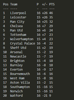 The only thing is when I started writing this blog post, I've noticed that what is shown by PowerShell is not really what is on the website. As you can see below, the Premier League Table has a lot more columns.