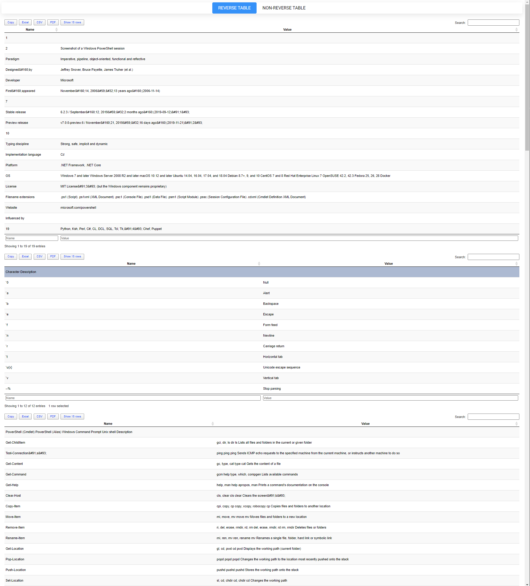 $Tables1 = ConvertFrom-HtmlTable -Url 'https://en.wikipedia.org/wiki/PowerShell' -ReverseTable