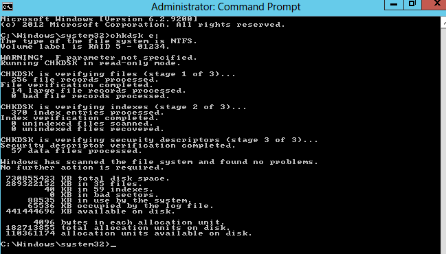 Since it's not very uncommon for things to hang a bit for different reasons we decided to take the shortest approach by doing reboot and server updates but Altaro was still giving an error. Since there was no backup being made we decided to go with non-destructive test of file system, to verify if that could be the issue, with chkdsk.