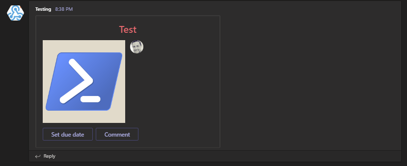 Card Lists is another type available for use in Microsoft Teams, and just like Hero Card it's not officially supported by Microsoft. Sending Card Lists is as easy as using New-CardList with content such as New-CardListItem and New-CardListButton.
