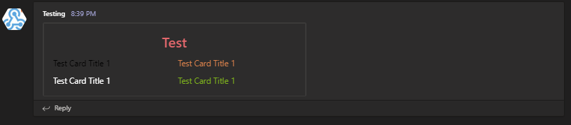 New-AdaptiveTextBlock -Size 'Medium' -Text 'Test Card Title 1' -Color Warning