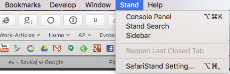 - After restart of Safari on Menu Bar there should be new option called Stand