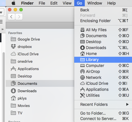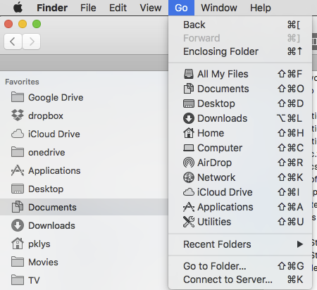 Close Mail application and open **Finder. **In finder if you choose Go menu following menu will appear.