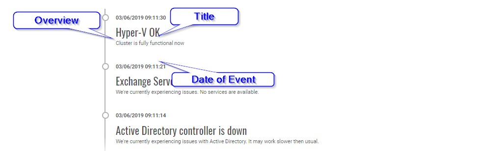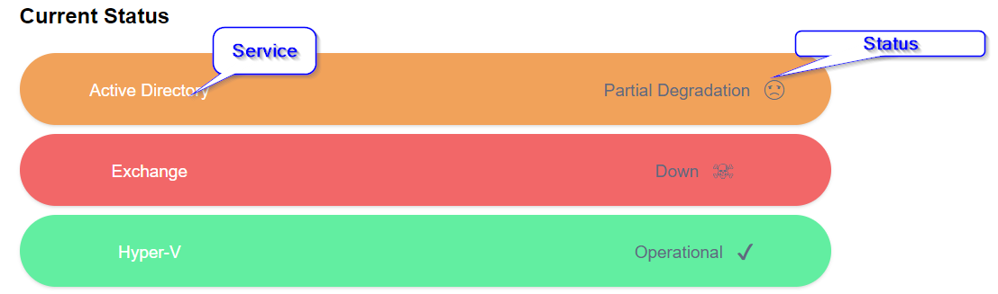 - 🌐 ServiceName – What's important to know is that when you write a service name, it can be anything you want (with reasonable limits). If it's the first event with Service Name, it will create a new status for it under the Current Status section. If it's second or later event, it will just update the status. If you will make a typo and have Active Directory and ActiveDirectory in two different events it will create two services. Being consistent is important.
