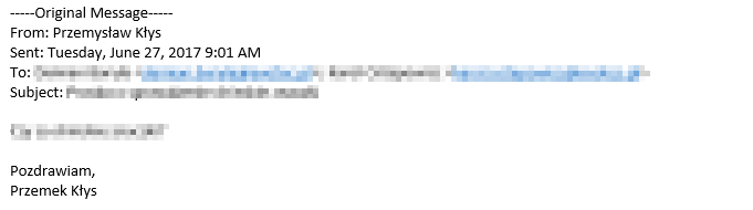 —–Original Message—– From: Przemysław Kłys Sent: Tuesday, June 27, 2017 9:01 AM To: Subject: