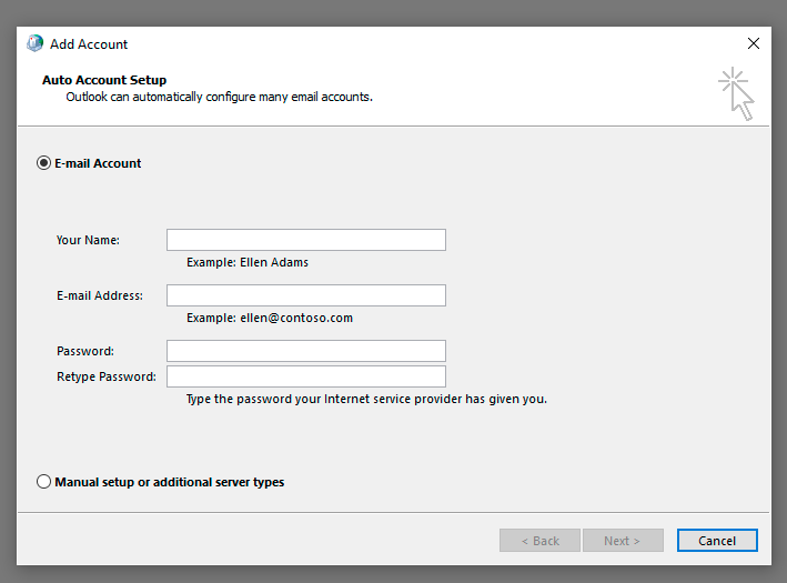 To achieve our goal we need to setup two Office 365 accounts in Outlook. Since Outlook tends to complain when there are 2 exchange servers being configured directly from Outlook (especially via older version of Outlook 2010, Outlook 2013) it needs to be done via Control Panel.