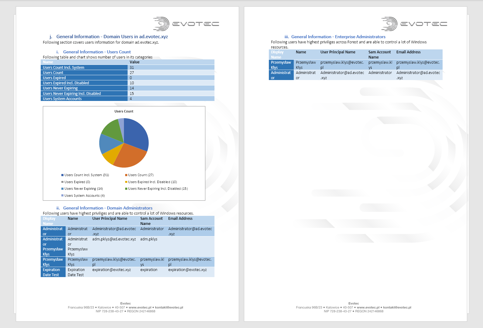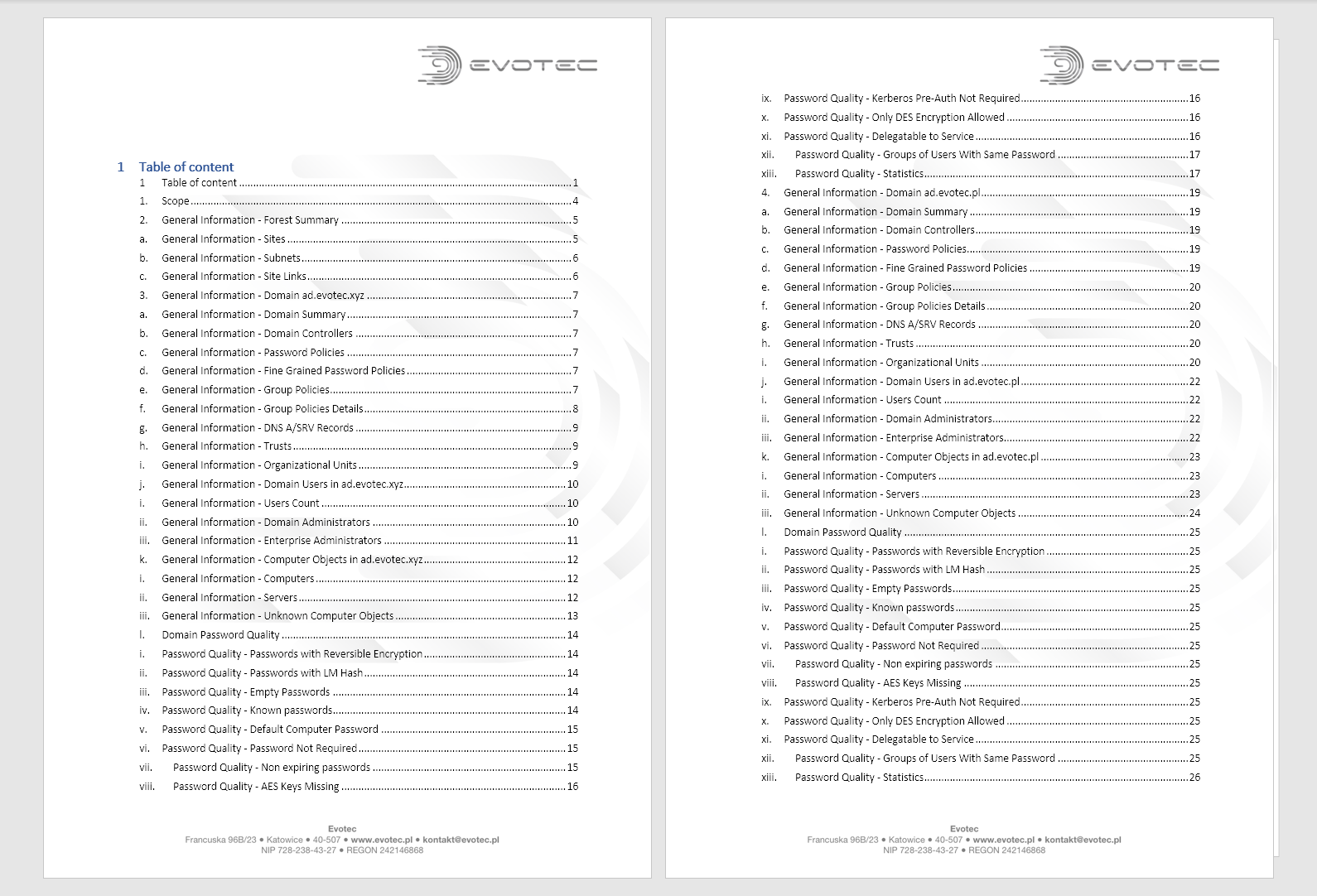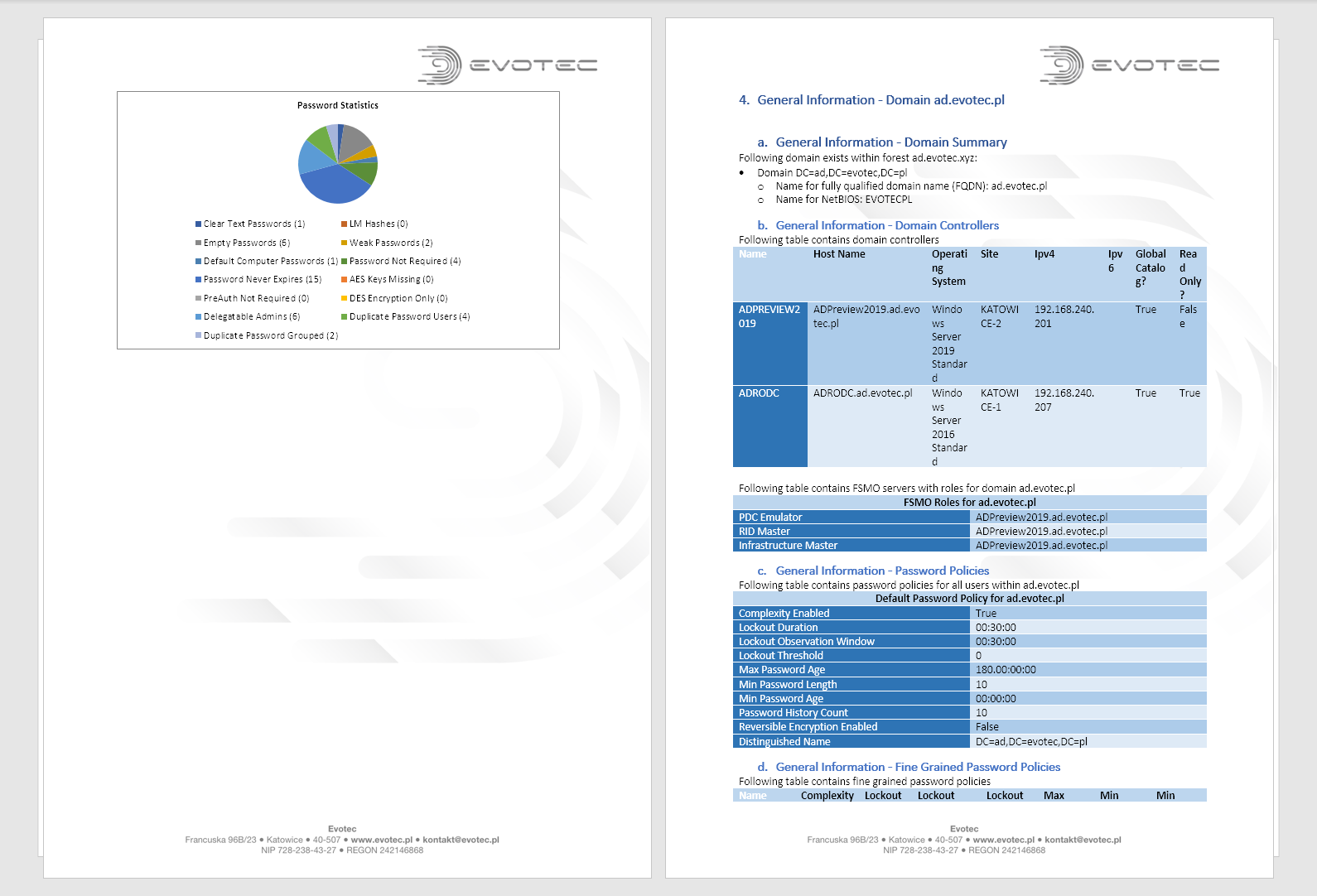This is adjusted template you can use for your own needs. Make sure to correct** paths for password files**, where documents are suppose to be saved and so on. Also remember you can enable / disable every section. You can also rearrange it. Remove it or event rename sections (to some degree). Only static part is SectionForest and SectionDomain has to stay the way it is. On a final note… quite important note.** Please remember that when you enable scanning of your domain passwords and compare it against 16GB (yes that's 16GB of text file) file from Have I Been Pwned** it will take hours or even days if not weeks on some domains to generate. So choose carefully. Maybe start with clean text passwords that you define and then depending on your needs go further with testing. Just to give you an idea… on my test domain that you see on my page it took over 1 hour and 20 minutes per domain with less then 30 accounts to compare against Have I Been Pwned database. In comparison same data was compared against my own list of passwords (10-20 or so) in few seconds.