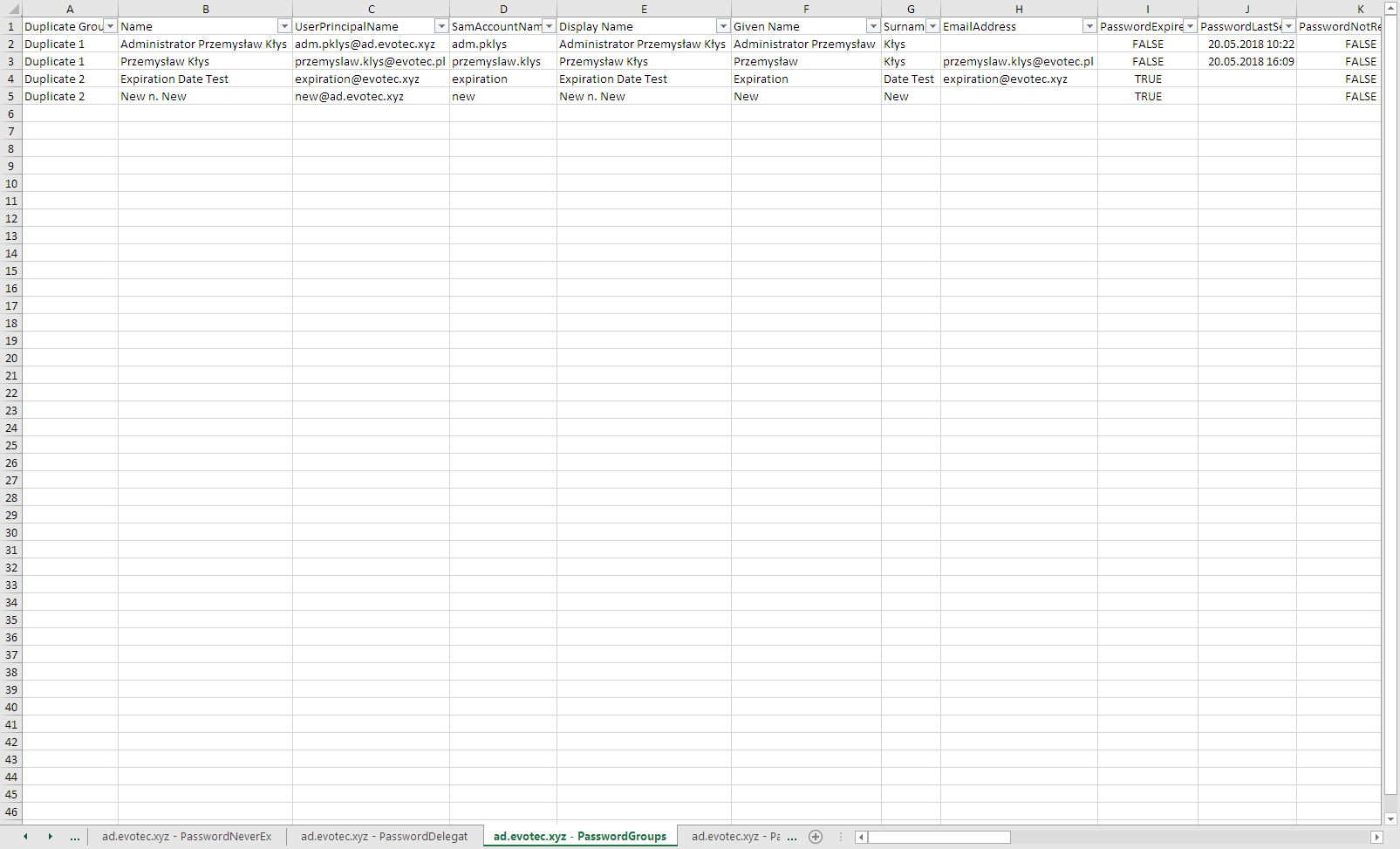 ExcelData = [PSWinDocumentation.ActiveDirectory]::DomainPasswordDuplicatePasswordGroups
