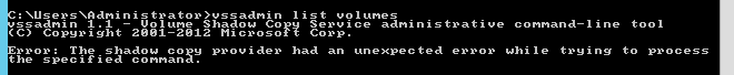 The shadow copy provider had an unexpected error while trying to process the specified command.