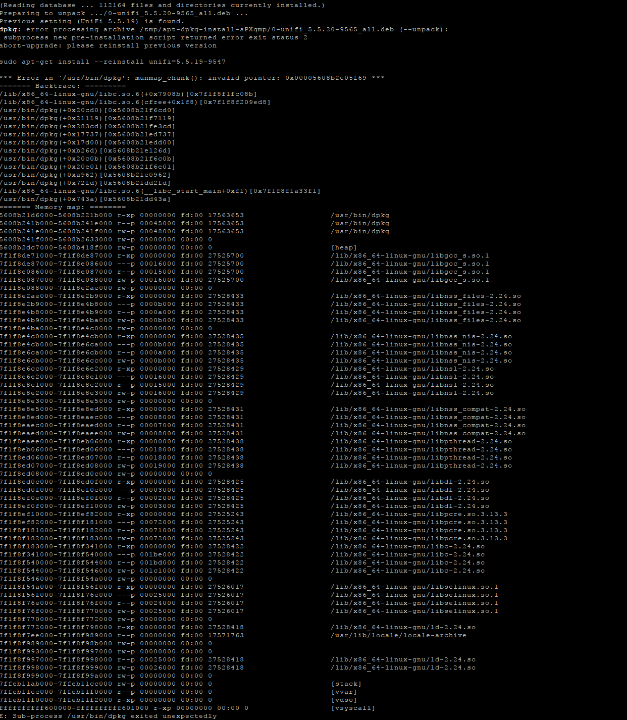 We've tried multiple fixes to this including: dpkg –configure -a, apt-get install -f, apt-get install –reinstall unifi=5.5.19-9547