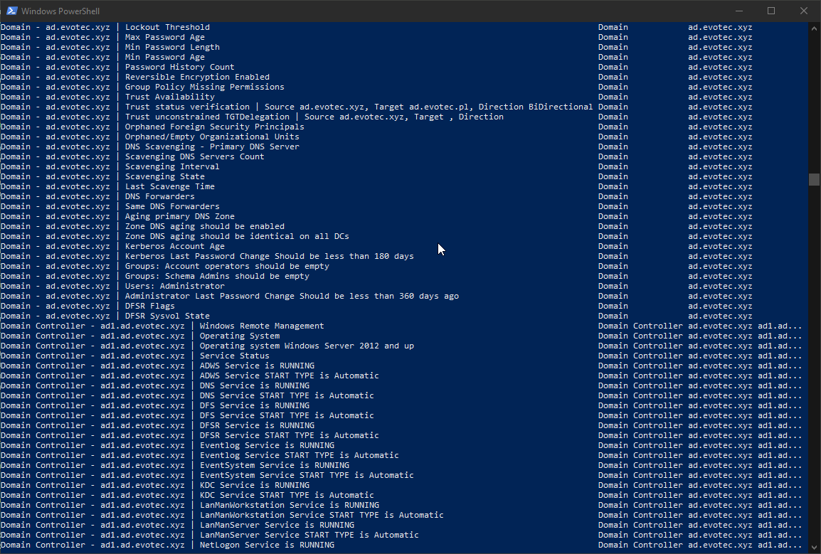 What I love about it, is that with one command Test-ADPester it delivered me the status of my Active Directory. Not a lot of it, but enough to tell whether my Active Directory is healthy or not, with virtually zero effort on my side.