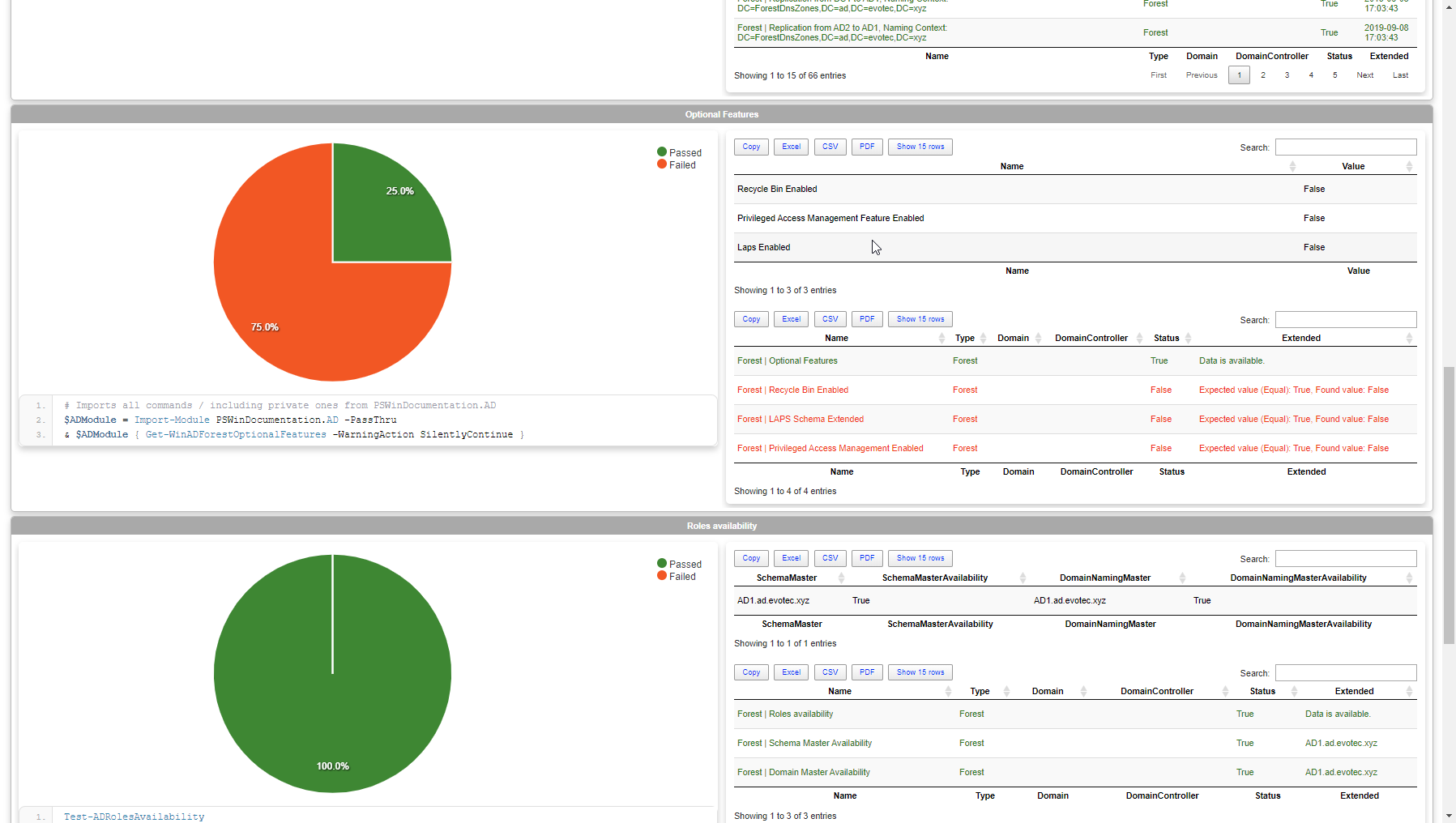 Me, being me, and with my tendency to reinvent the wheel, I thought that I need something more then **Pester **checks and that my PesterInfrastructureTests is not going to cut it. I've decided to do a lot of research trying to find what others have done in the area and while there are lots of materials and approaches all require manual steps to start, or check an only small part of Active Directory. Following is a list of some things I found useful and things that gave me ideas to build something of my own.