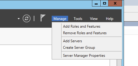 Choose **Manage **in the top right corner and choose Add Roles and Features